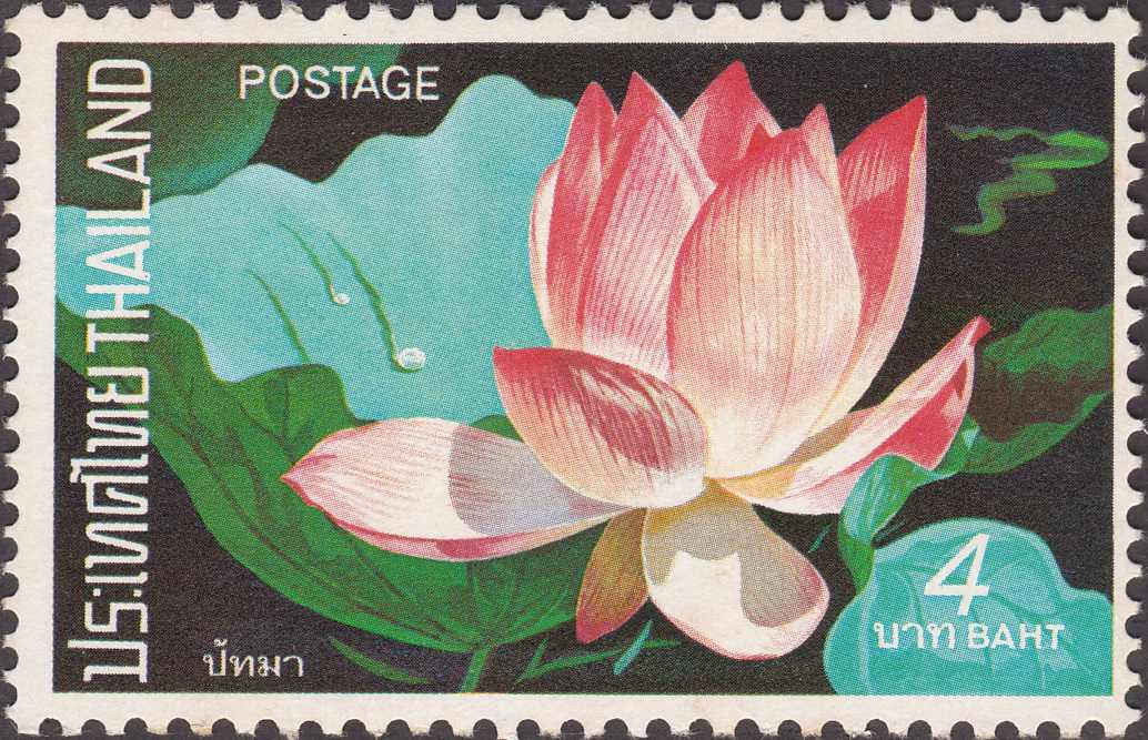 Lotus and Water Lily in stamp mosaic , 28.05.1991 , Thailand